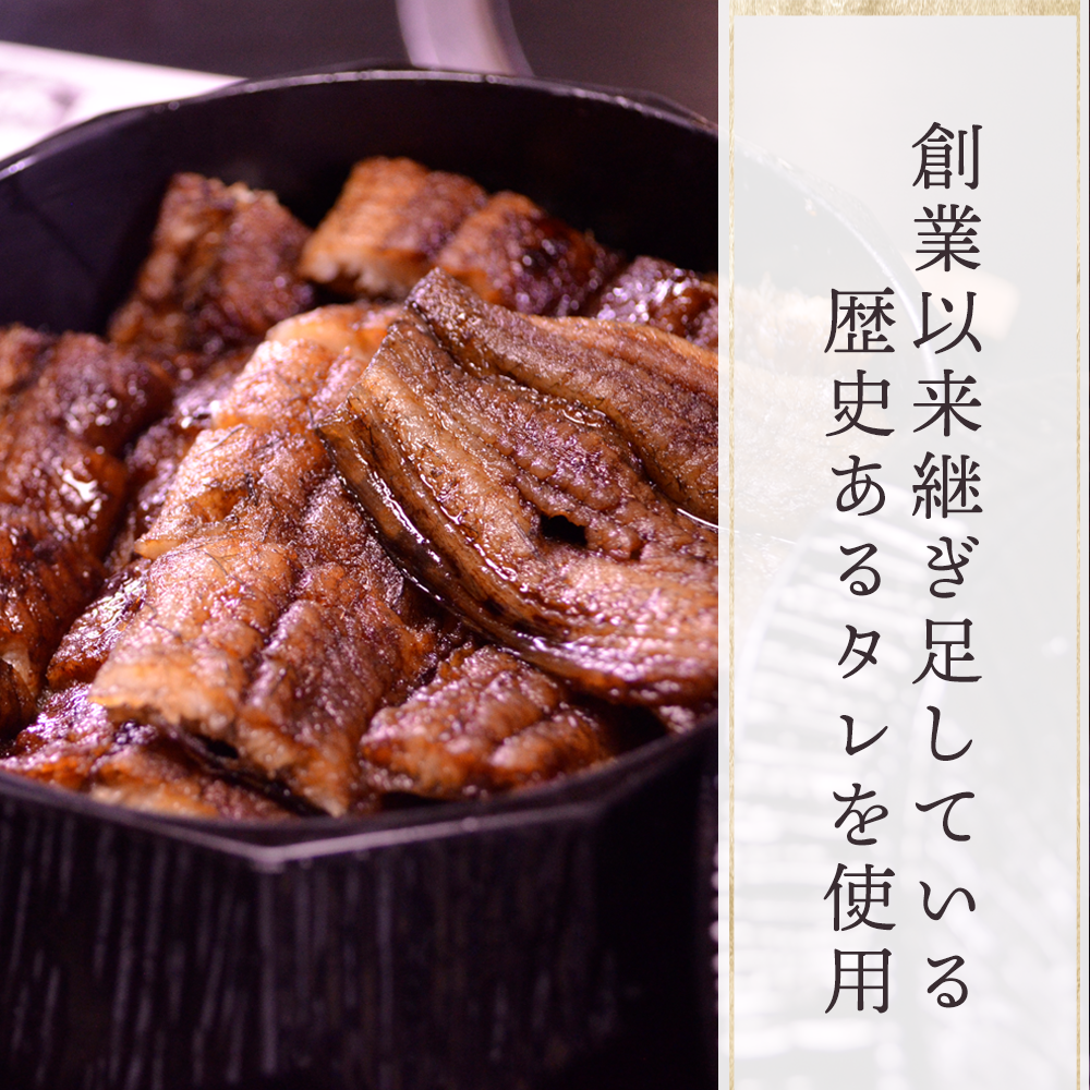 鰻に使用しているタレは、創業以来継ぎ足しているタレです。昔からの味が変わらないように、季節によって職人の舌で微調整を行い、一定のお味を保っております。創業からのタレには当店の歴史が刻まれており、どこにも真似できない、旨味の詰まったお味です。是非当店自慢のタレを、鰻料理でお召し上がりください。